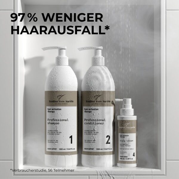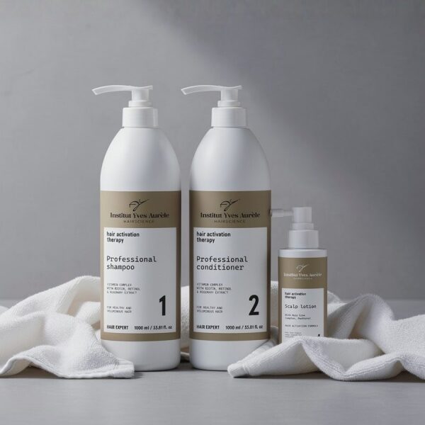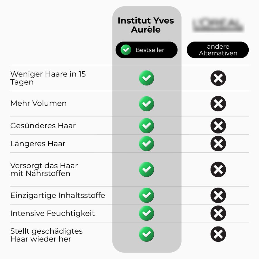 Die Entwicklung dieser Haarwachstums-Aktivierungstherapie dauerte für die Wissenschaftler von Institut Yves Aurèle 10 Jahre. Dieses dreistufige System wurde für Haare entwickelt, die mehr Volumen benötigen, deren Wachstum reaktiviert und deren Haarausfall stabilisiert werden soll.